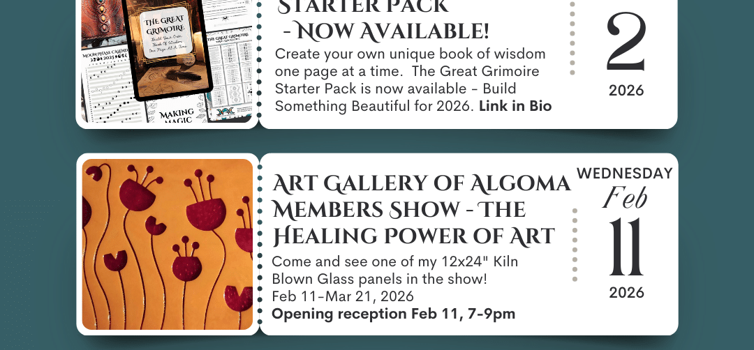 Come visit me at the show! I’ll have some unique leather binders and printed starter packs for the Great Grimoire, unique carved crystals, the Awakening Oracle, and more! More Info Here.